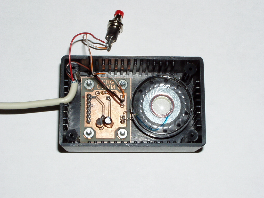 The CWVM is a low voltage, Morse code reporting, voltmeter. Instead of having to look at a display, the CWVM reports the reading in Morse code. The CW voltmeter operates from a +7VDC to +25VDC power source (9V battery or even the actual voltage source being monitored) and measures voltage levels from 0.00VDC to +25.50VDC. Pushing and holding the power button results in a Morse code voltage report similar to: "13.80V" followed by a two second delay. The report repeats, with a new A/D sample each time, as long as the button is pushed. Morse code sending speed is potentiometer adjustable from 5WPM to 45WPM. |