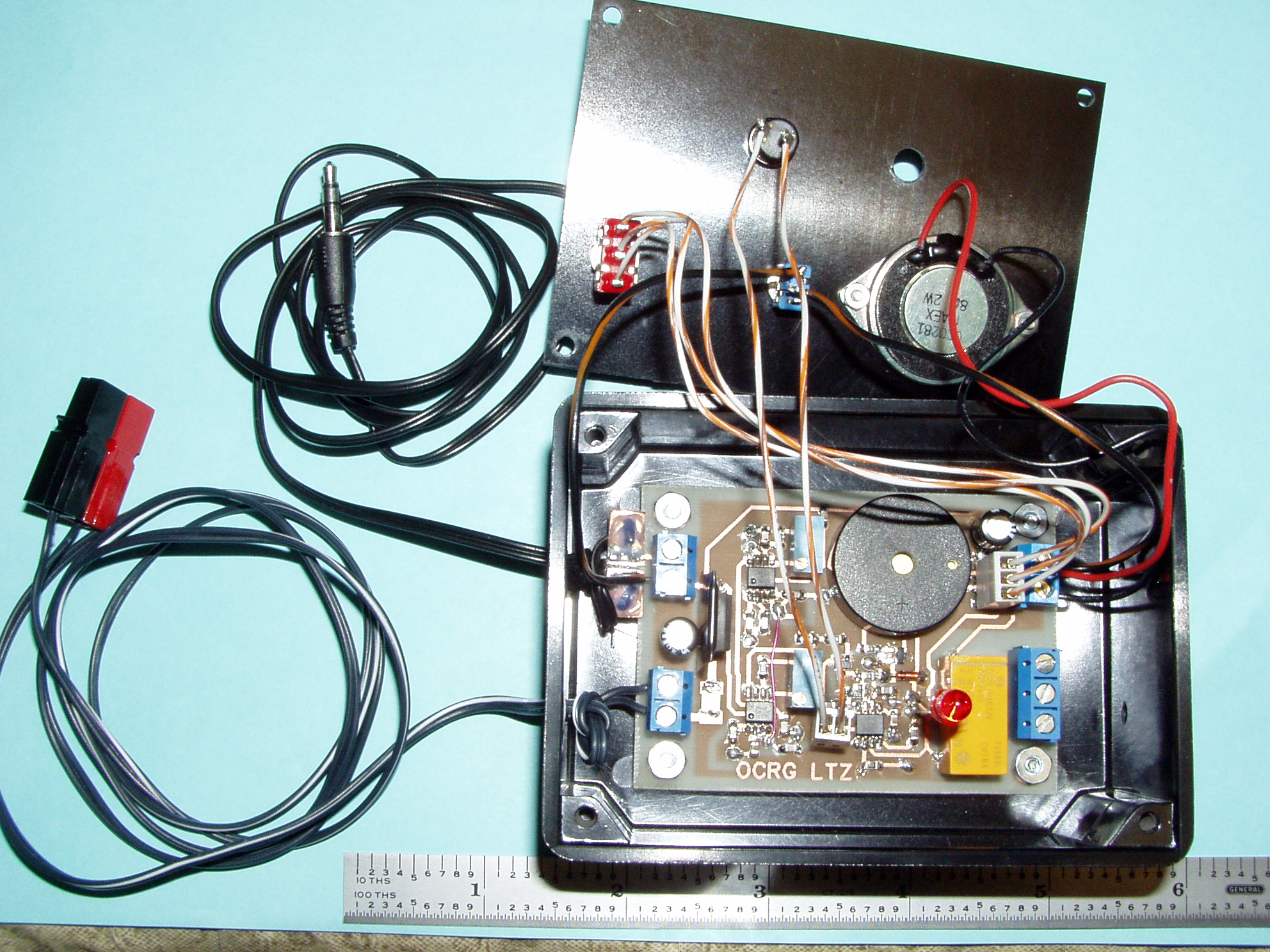 The monitor speaker may be manually turned on or off for monitoring of the source radio's audio signal whenever desired. The LTZ latches the decoded alert on, so even if one isn't present when the alert digit tone happens, the LTZ will still show an indication that an alert has previously occurred. The latched-on decoded alert is cleared with the momentary push-button "Alarm Clear" switch. By simply changing two resistors in the circuit, the LTZ can be modified to decode any other single digit of the Dual Tone Multi-Frequency available tone pairs. |